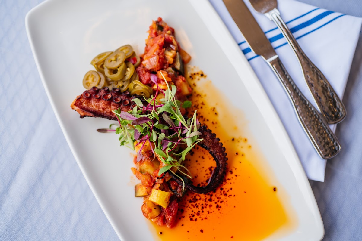 Excellent food (I had the Spanish Octopus - delicious), the service was spot on (not lax, but not in top of us either, just right). The atmosphere is also good and quiet enough to have a nice conversation. I would highly recommend eating here.