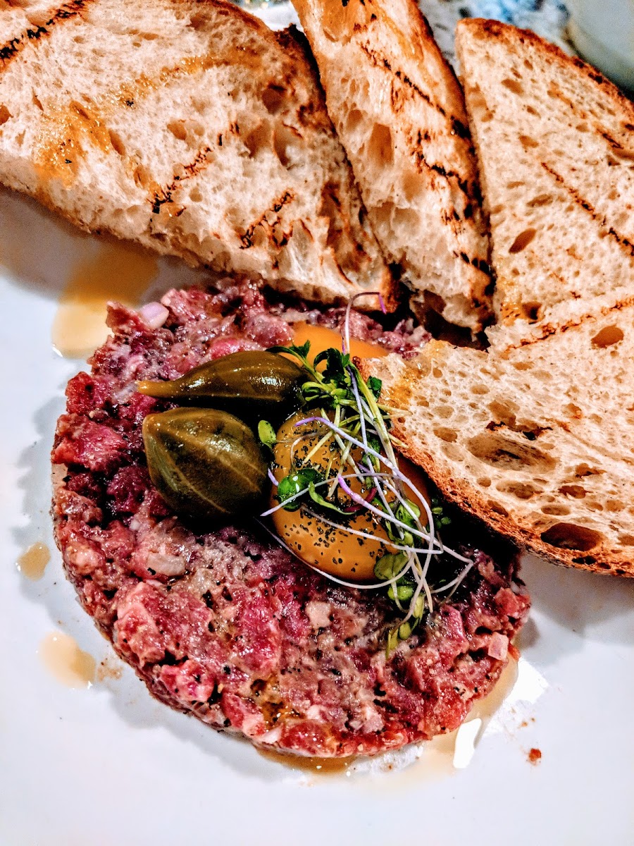 We got the bread service, oysters, risotto, and surf & turf. The oysters were okay (I’m not a big fan of oysters) but everything else tasted amazing! I absolutely adored the bread. However, we did wait 30-40 minutes for our food and it was hard to get ahold of our server to order food and get our bill. We came in right before the dinner rush on a weekday, around 6pm, and were sat right away. If our server wasn’t hard to find, I think we would’ve been able to order before the rush and wouldn’t have had to wait nearly as long for our food. I’d definitely recommend to a friend but would warn of the wait.