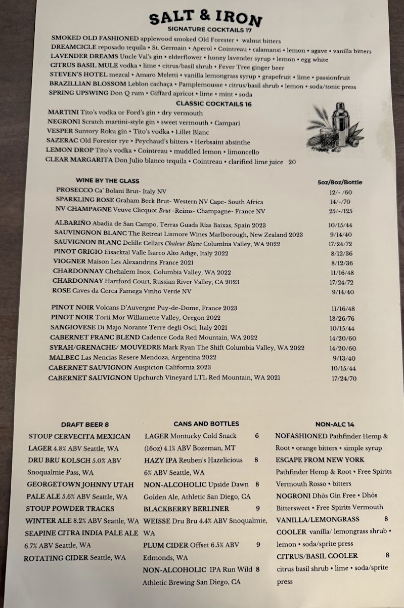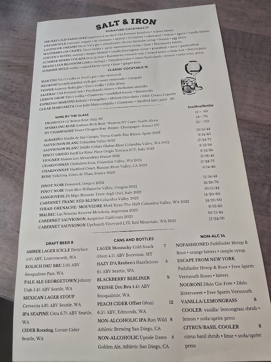 Overall, the food and drinks feel comfortably elevated without being formal, making Salt and Iron a fitting spot for everyday enjoyment as well as special moments at 321 Main St in Edmonds.